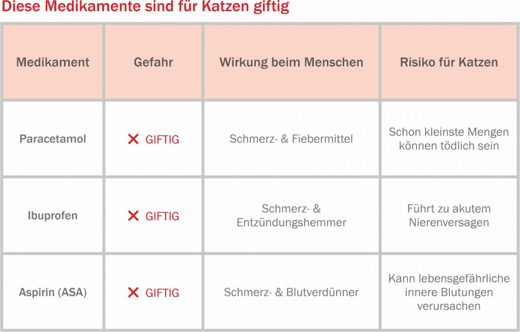 • Auch andere Schmerz- und Fiebermittel aus der Humanmedizin sind für Katzen hochgiftig