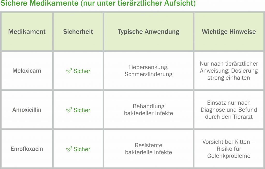 ⚠️ Wichtig zu wissen: Medikamente gehören nur in Tierarzt-Hand. Was uns Menschen hilft, kann Katzen das Leben kosten.
